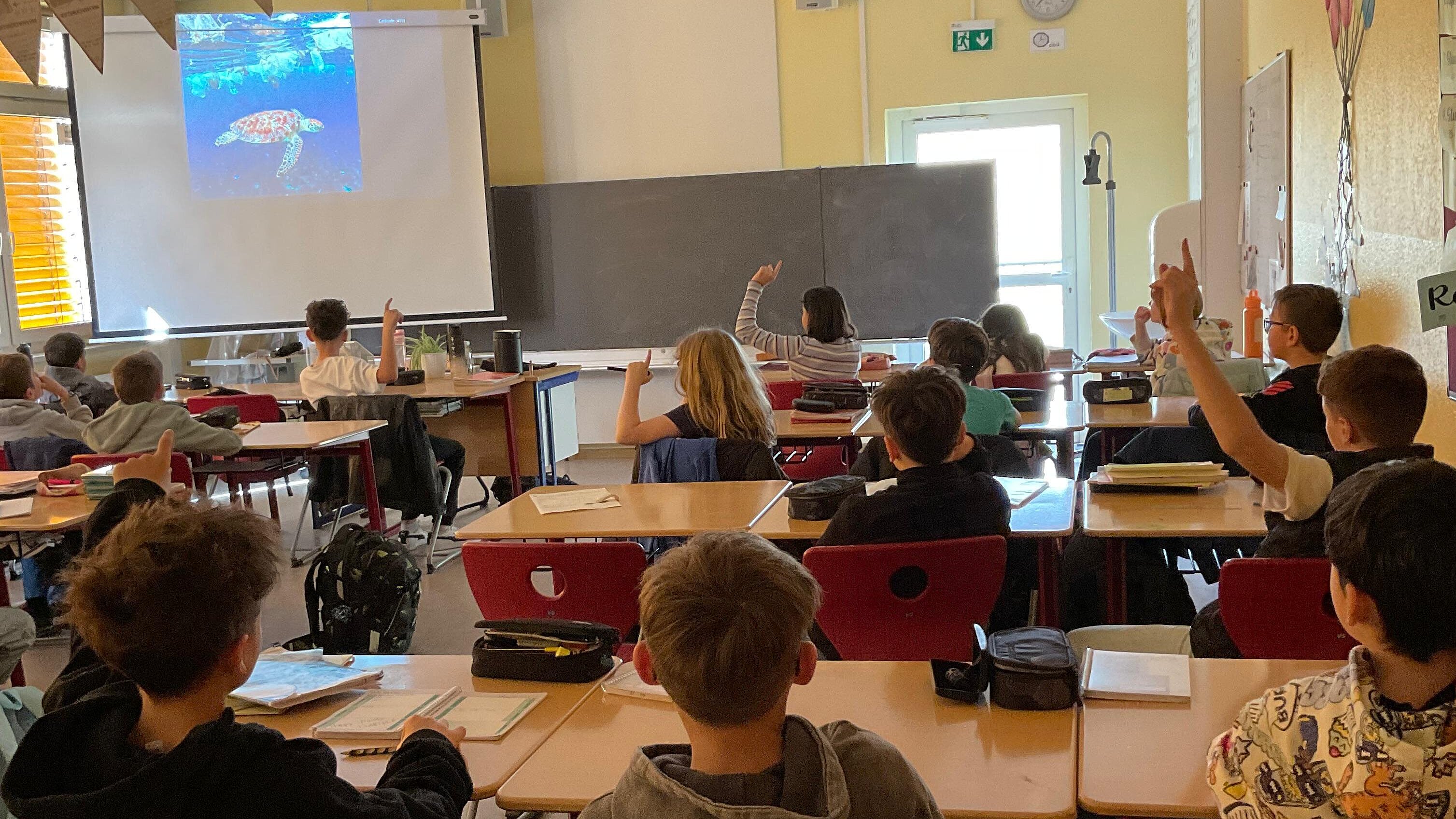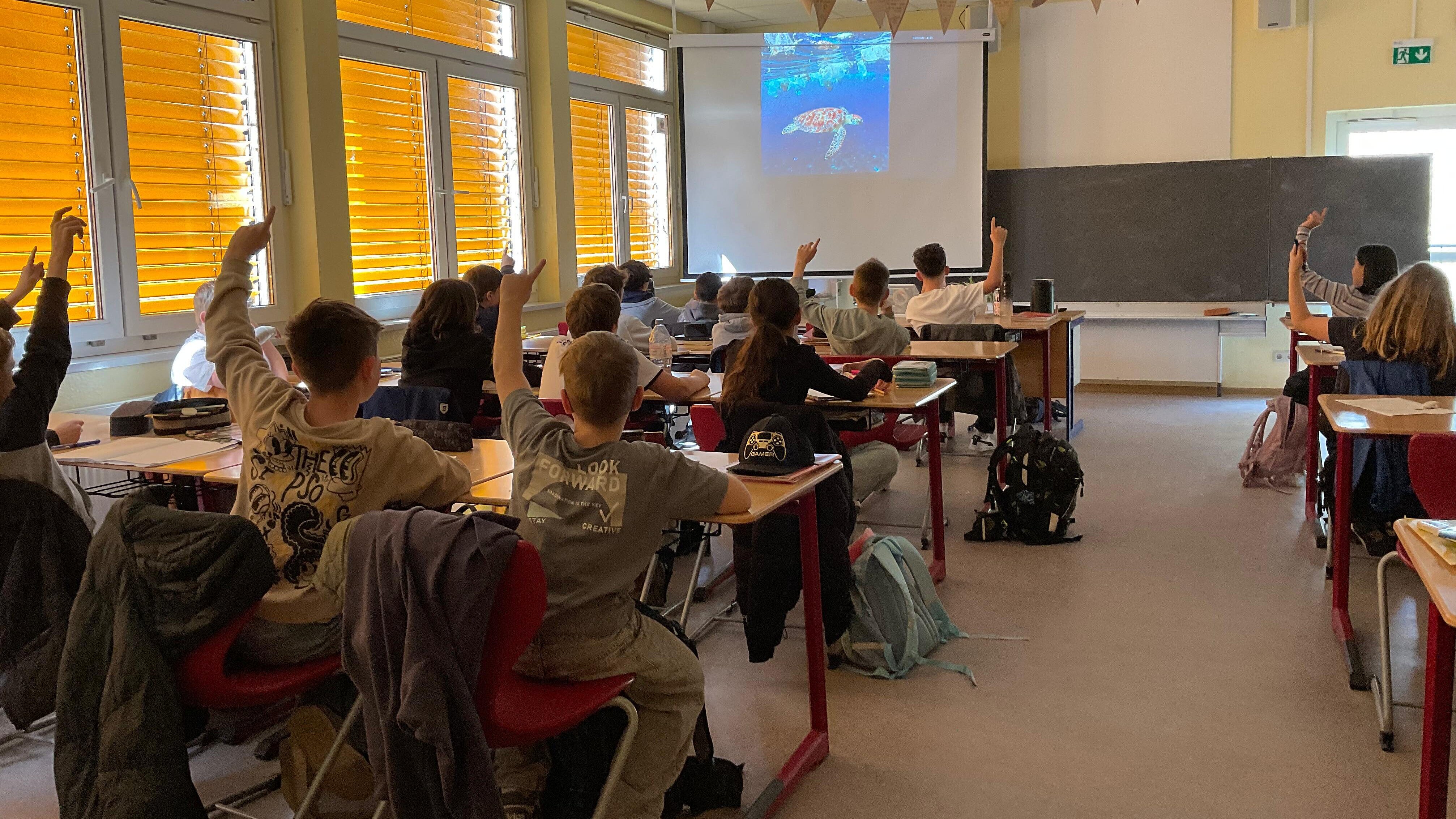 Am Montag, den 16.03., haben wir - die Klasse 5d - zusammen darüber gesprochen, wie wir unsere Meere besser schützen können. Wir haben auch gelernt, dass jeden Tag viele Meerestiere wegen Plastik sterben müssen.