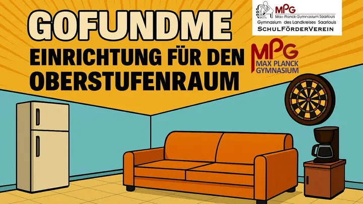 Das Max-Planck-Gymnasium Saarlouis hat der Oberstufe (Jahrgänge 11–12) einen Raum zur Verfügung gestellt, der als Lern- und Aufenthaltsraum genutzt werden soll. Für eine sichere und nutzerfreundliche Ausstattung fehlen jedoch noch dringend eine feuerfeste Couch, Billardkugeln und Queues, eine Dartscheibe, eine Kaffeemaschine sowie weiteres Mobiliar.