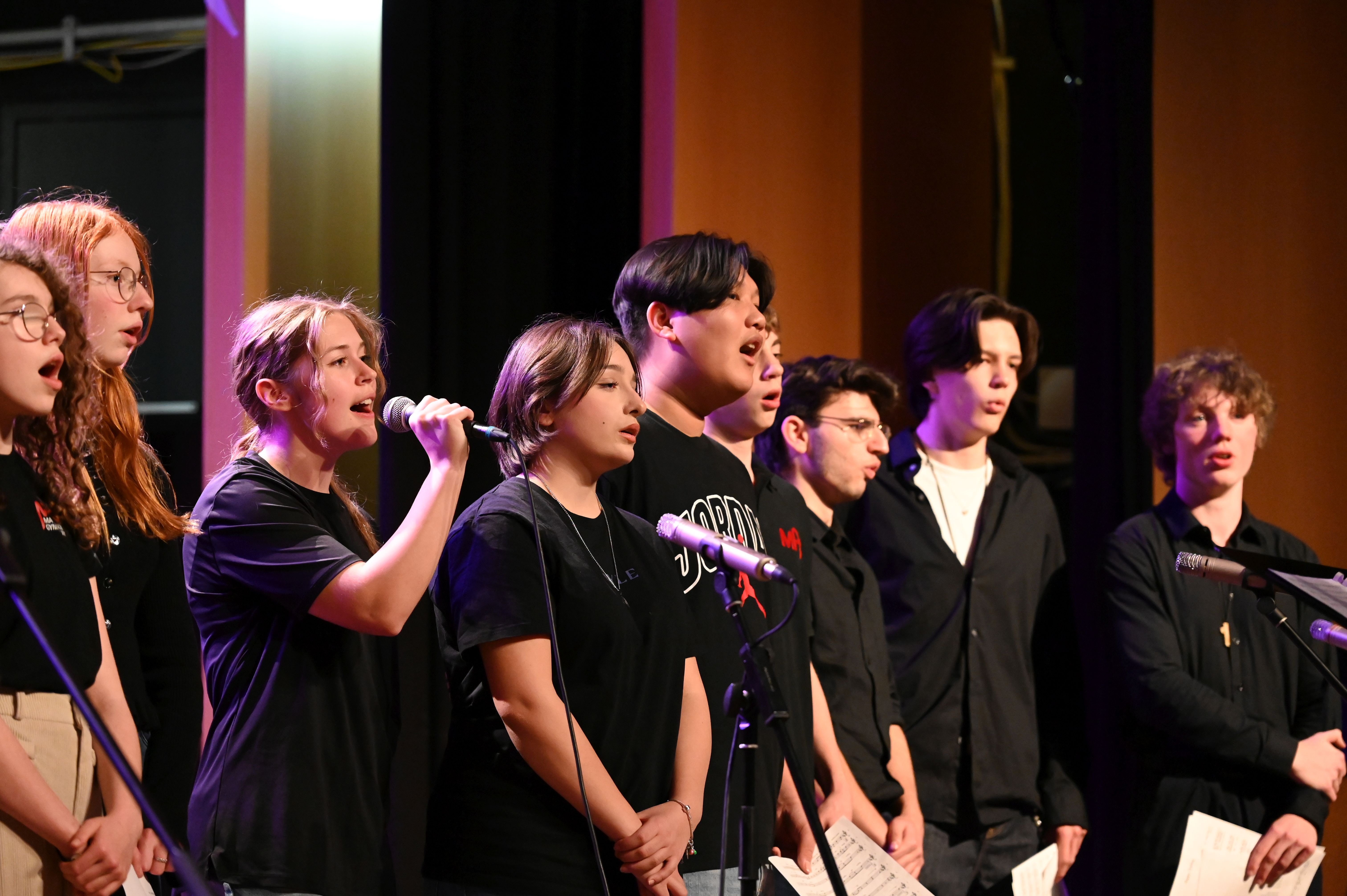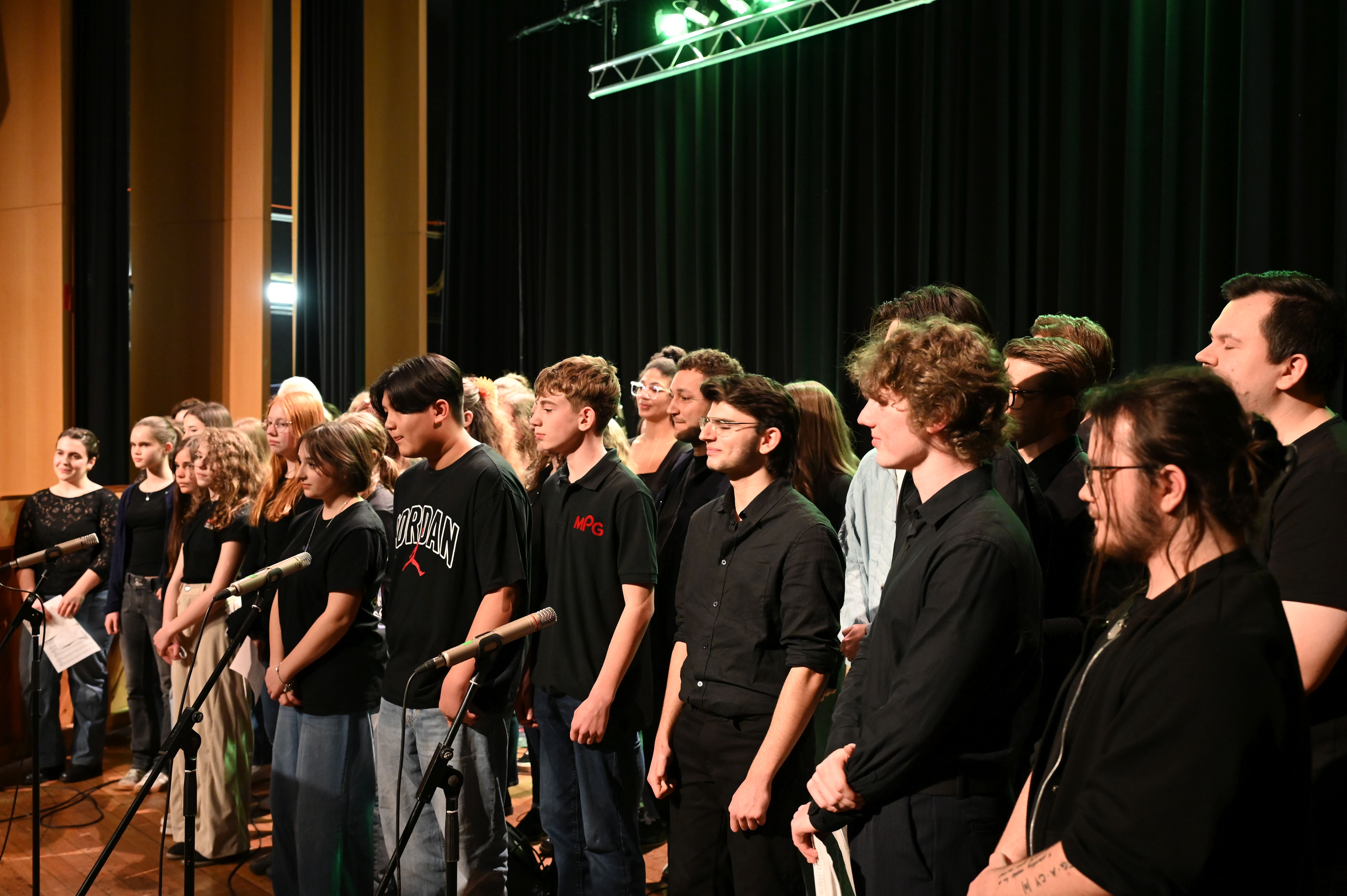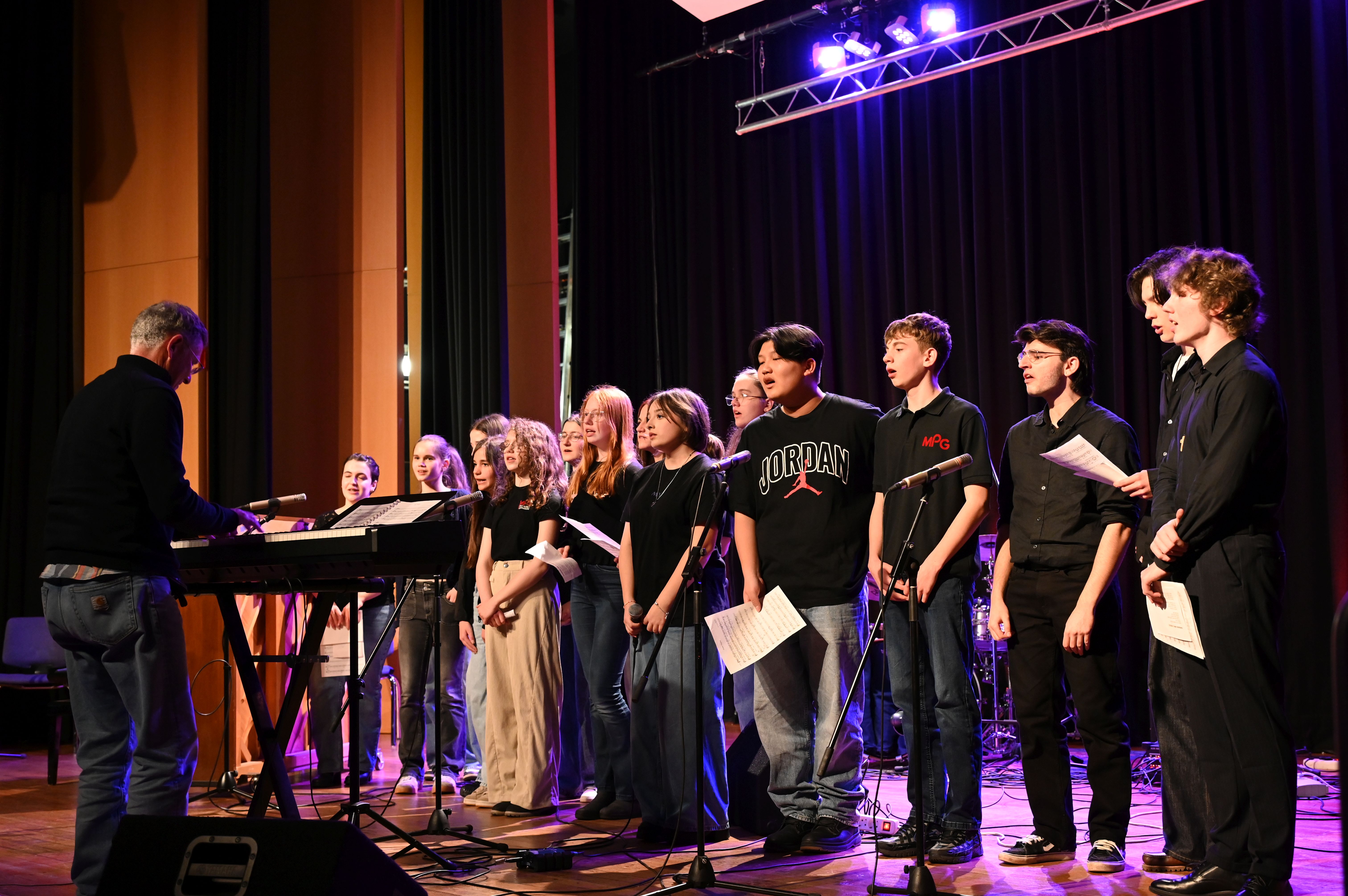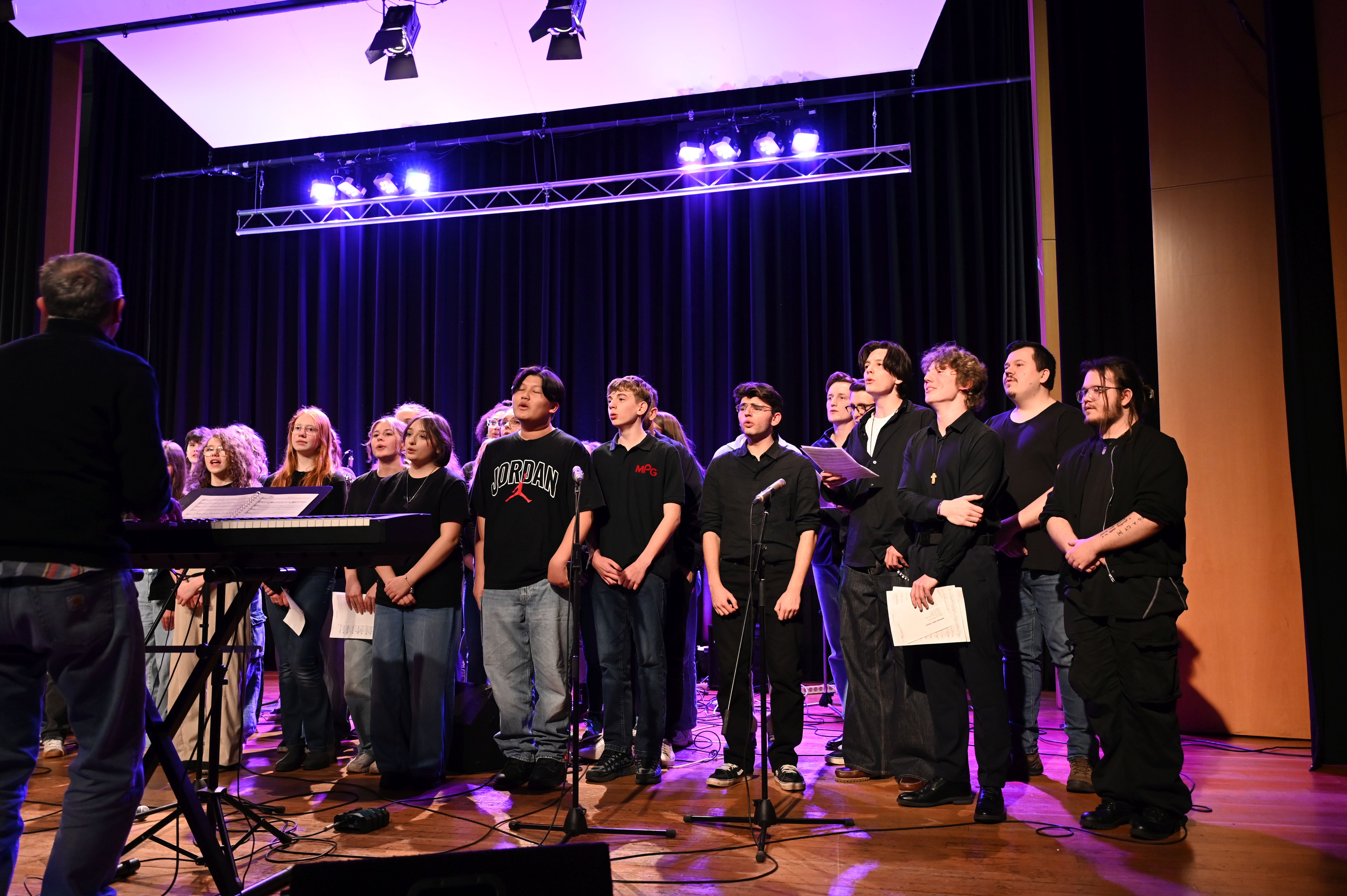 Wie schon genau drei Jahre zuvor gelang es den Musiker*innen vom Lycée Aristide Briand auch dieses Mal mühelos, die ganze Schule zu rocken! Der musikalische Funke sprang sofort über und bescherte uns allen ein tolles Erlebnis - sowohl künstlerisch als auch zwischenmenschlich. Ein Höhepunkt war die gemeinsame Performance des MPG-Songs "Sowohl als auch" in deutscher und französischer Sprache.