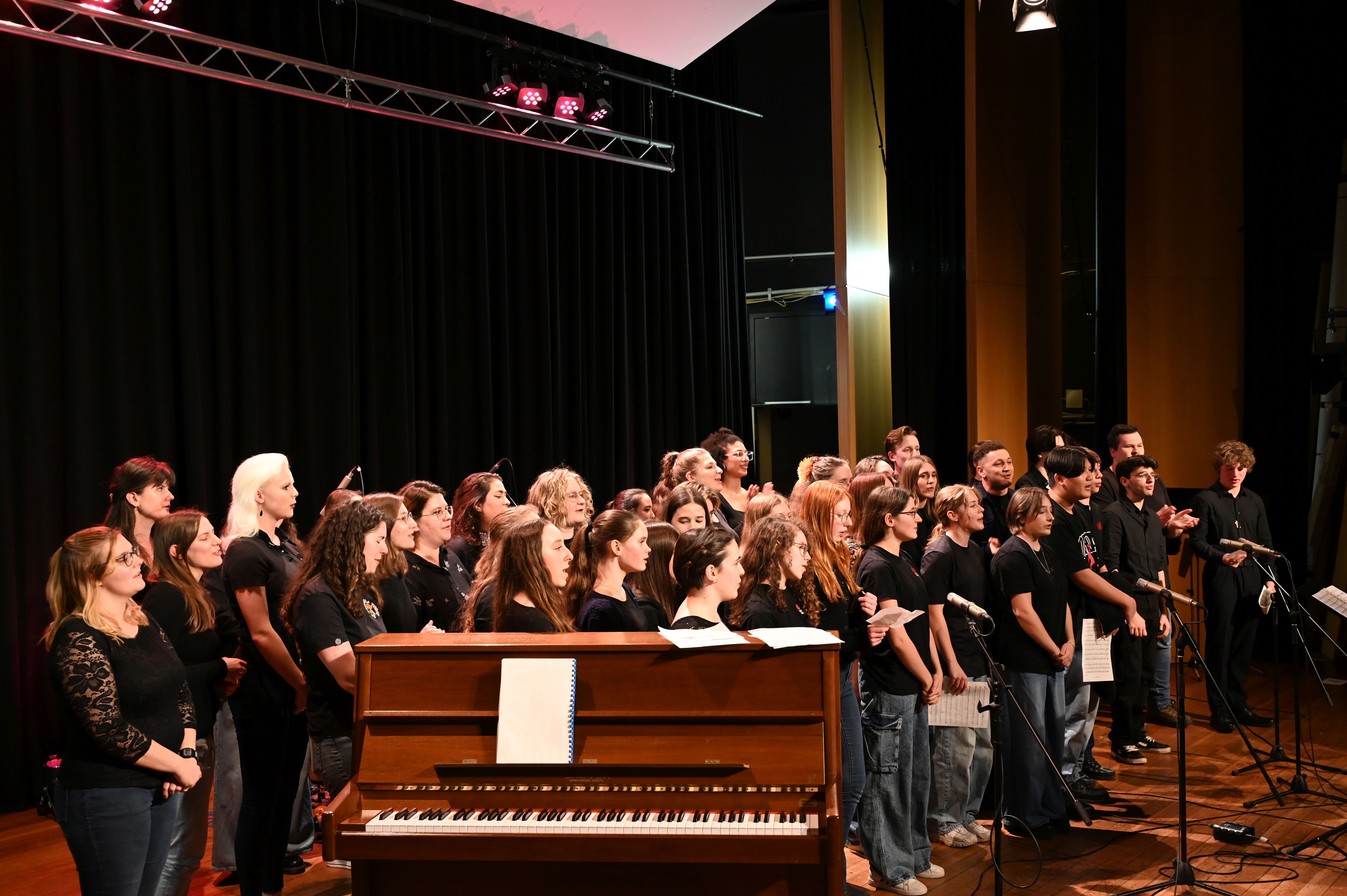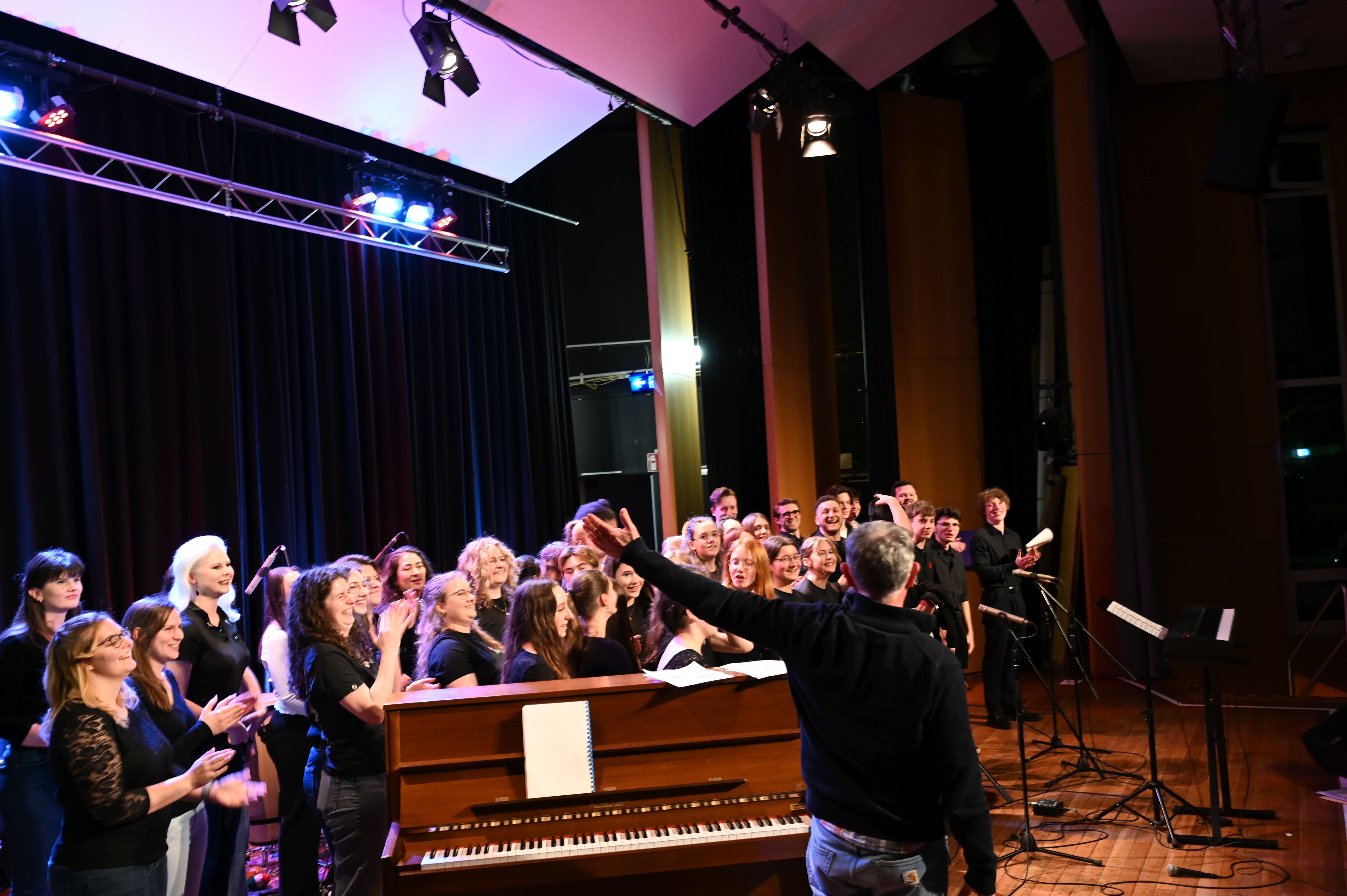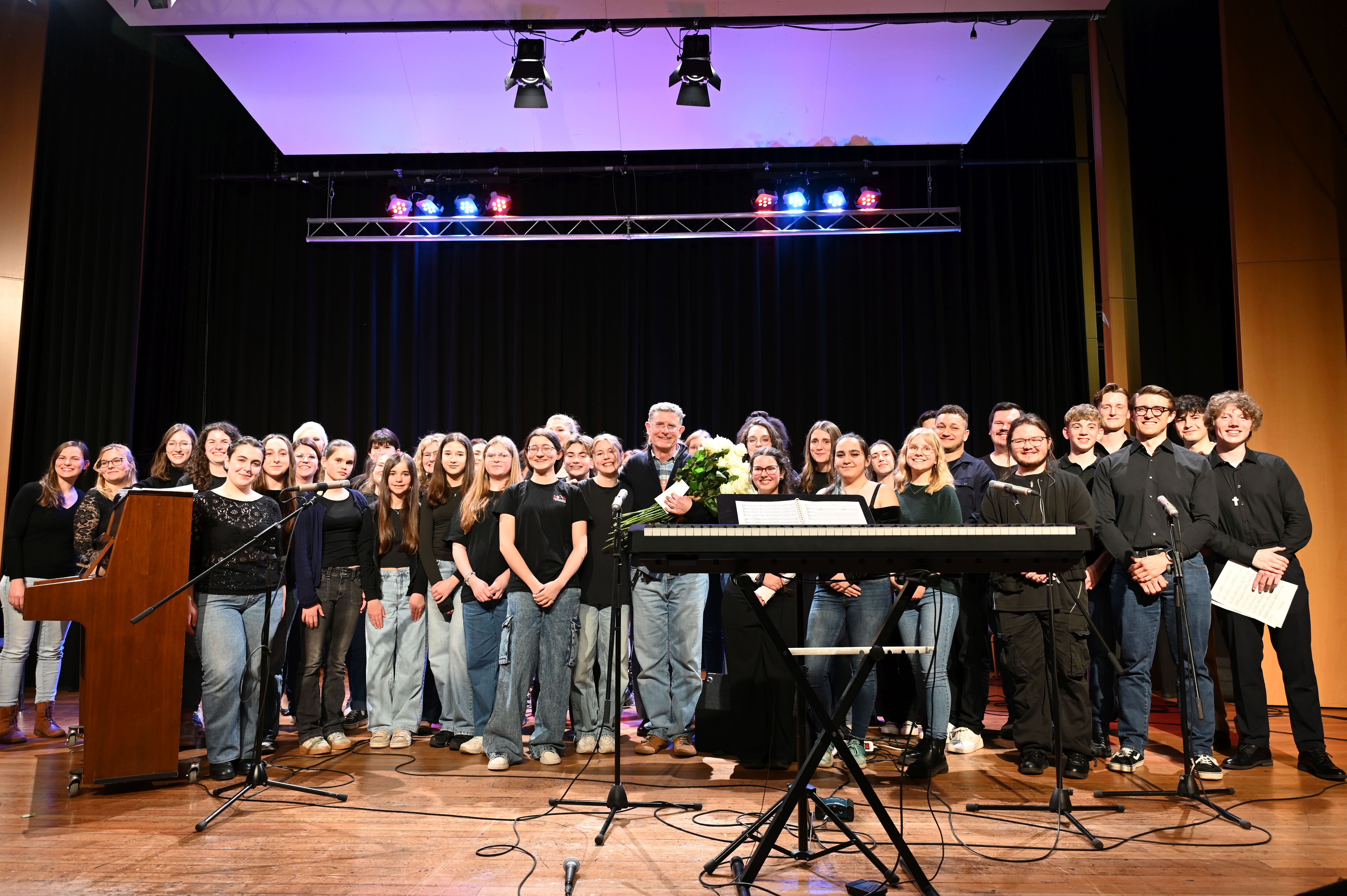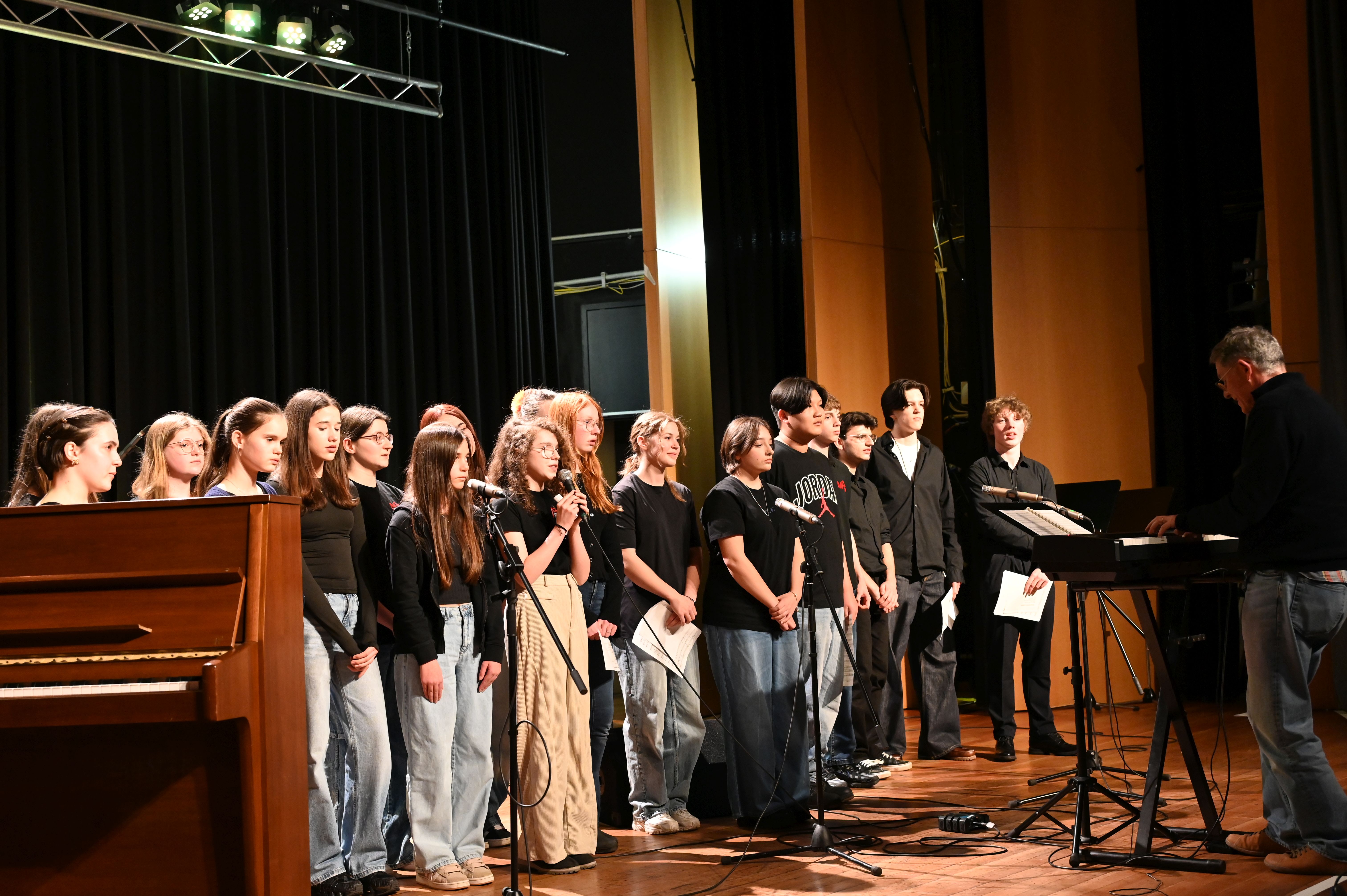 Wie schon genau drei Jahre zuvor gelang es den Musiker*innen vom Lycée Aristide Briand auch dieses Mal mühelos, die ganze Schule zu rocken! Der musikalische Funke sprang sofort über und bescherte uns allen ein tolles Erlebnis - sowohl künstlerisch als auch zwischenmenschlich. Ein Höhepunkt war die gemeinsame Performance des MPG-Songs "Sowohl als auch" in deutscher und französischer Sprache.