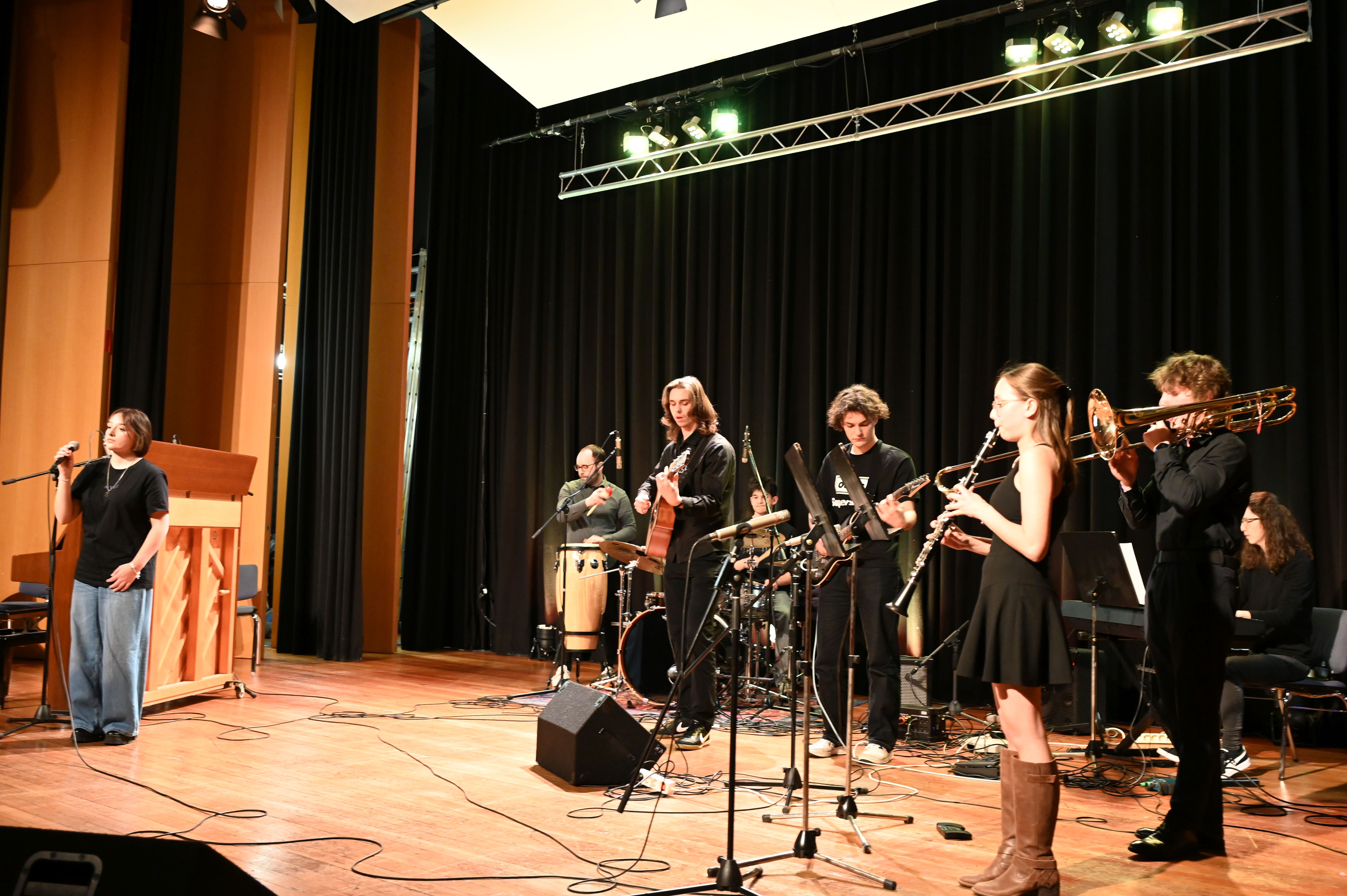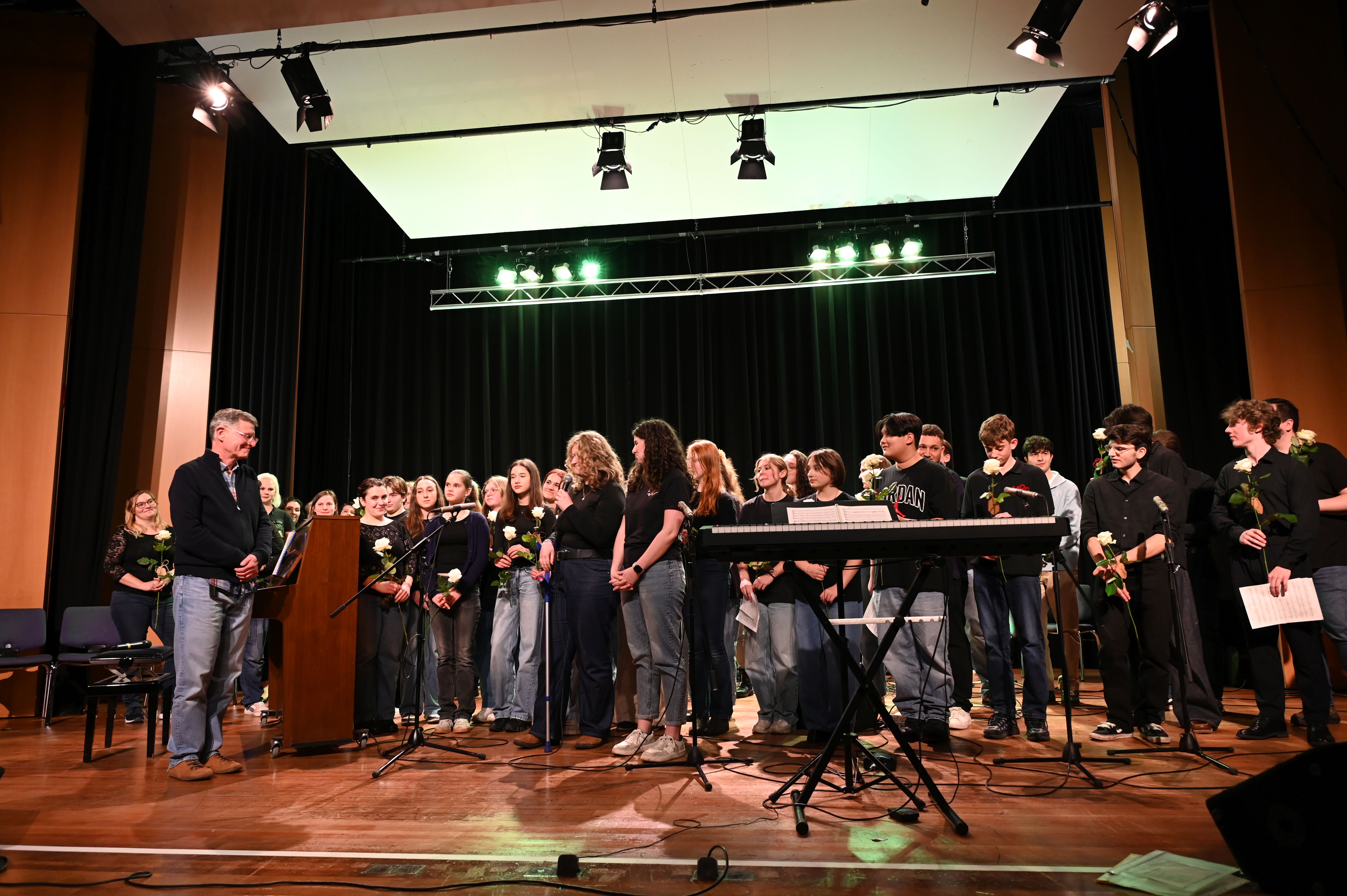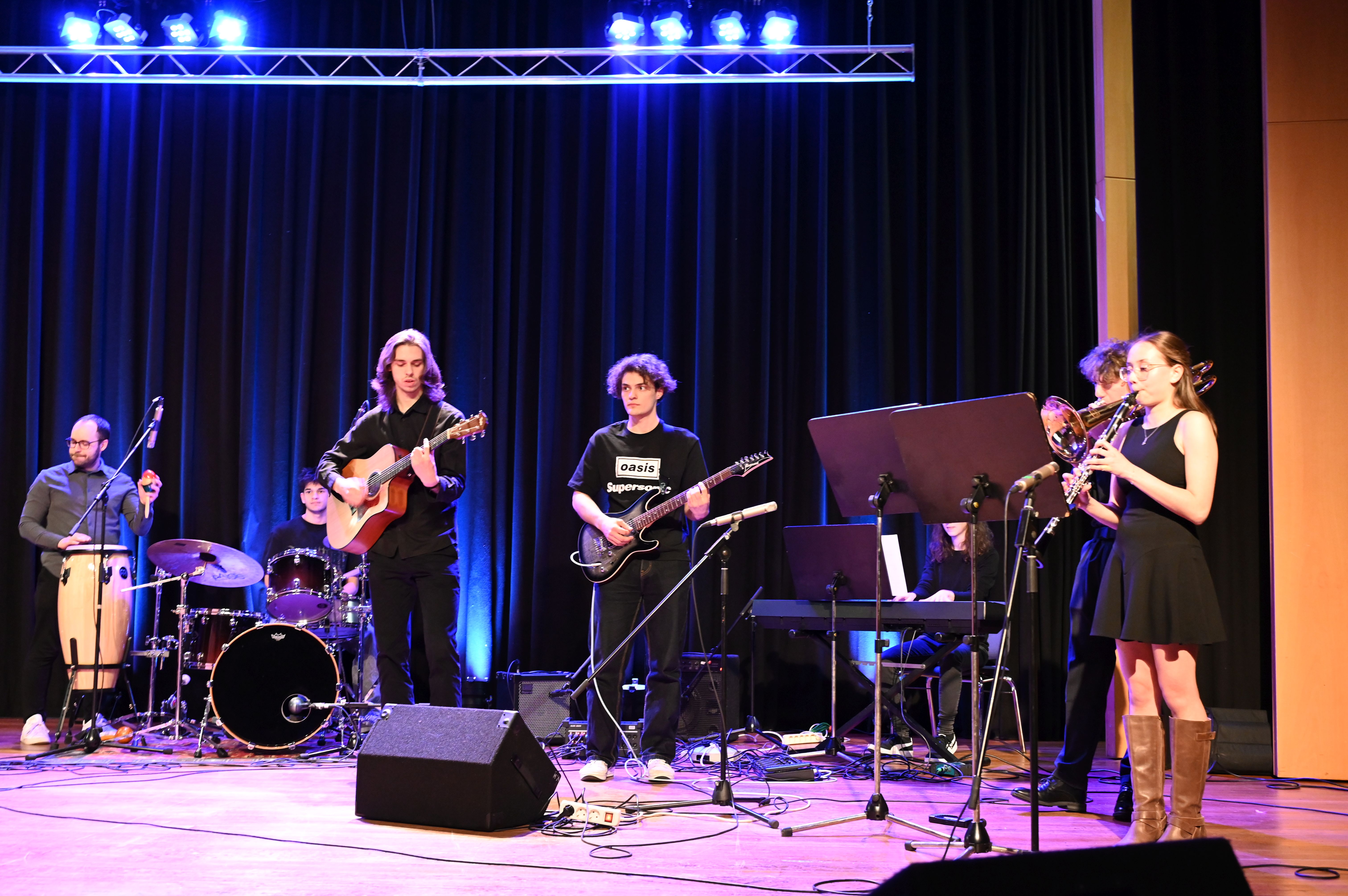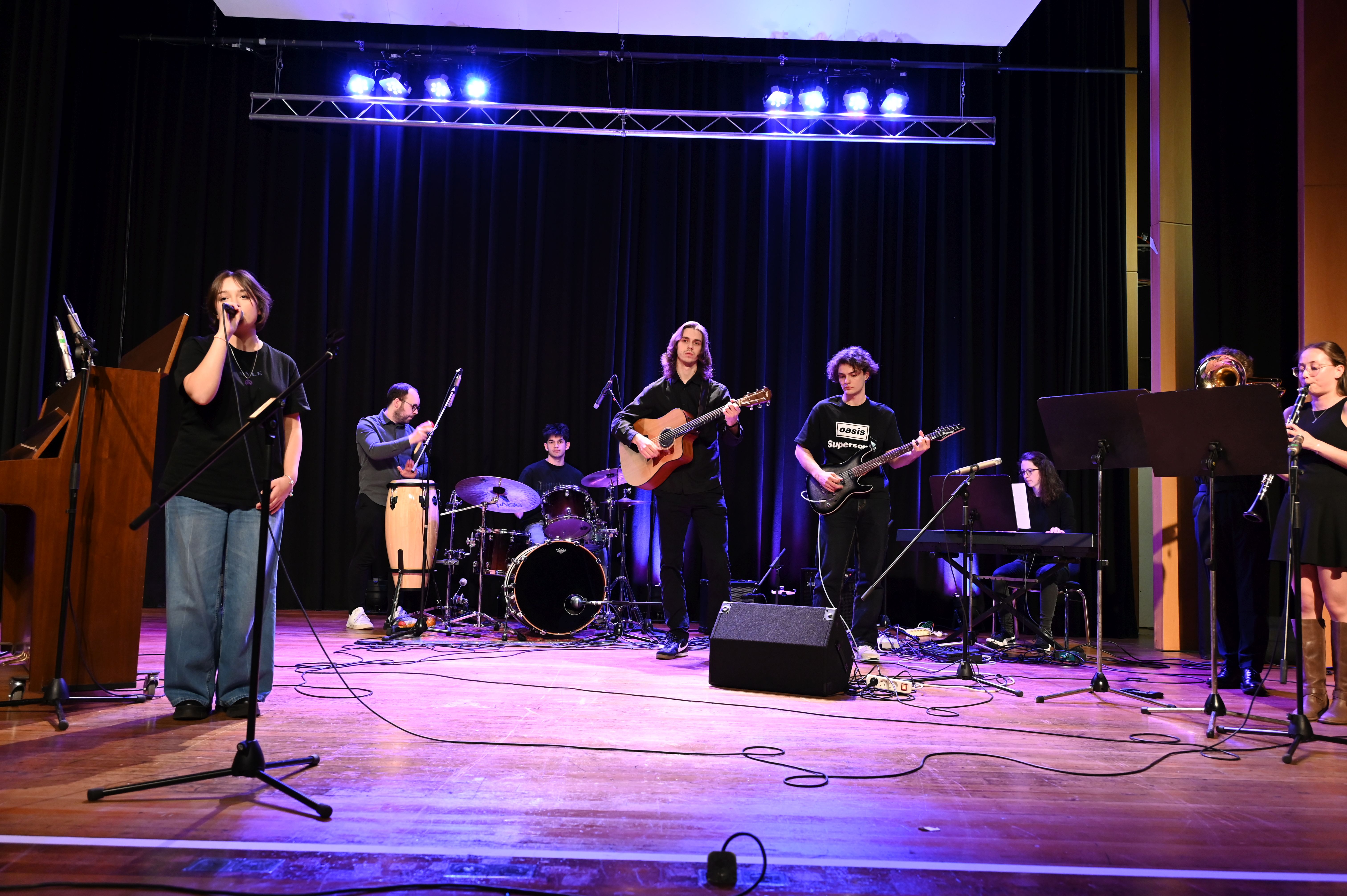 Wie schon genau drei Jahre zuvor gelang es den Musiker*innen vom Lycée Aristide Briand auch dieses Mal mühelos, die ganze Schule zu rocken! Der musikalische Funke sprang sofort über und bescherte uns allen ein tolles Erlebnis - sowohl künstlerisch als auch zwischenmenschlich. Ein Höhepunkt war die gemeinsame Performance des MPG-Songs "Sowohl als auch" in deutscher und französischer Sprache.