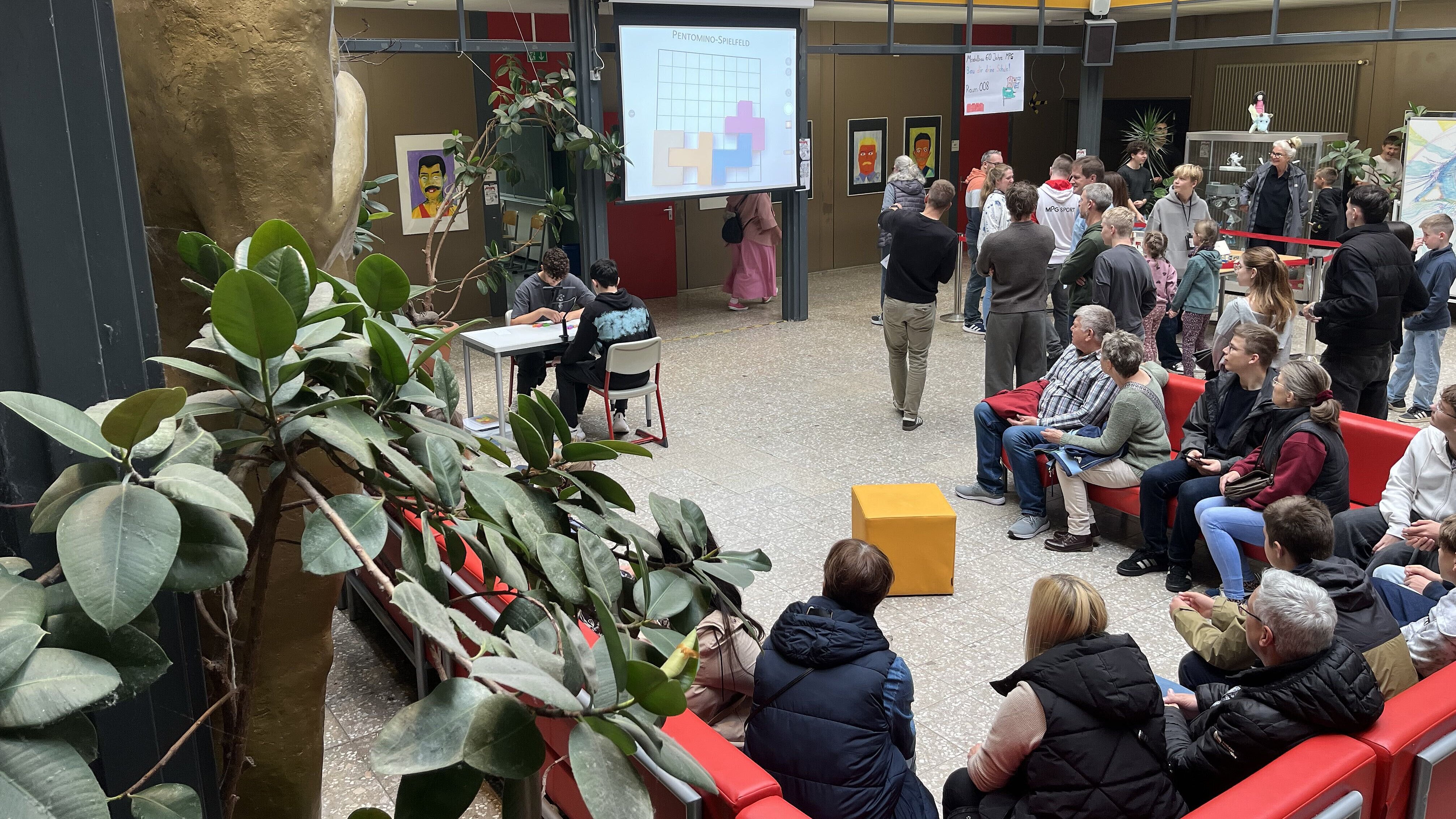 Die PENTOMINO-MEISTERSCHAFT am Max-Planck-Gymnasium wurde in diesem Jahr anlässlich des 60-jährigen Schuljubiläums wieder ins Leben gerufen und wird zukünftig wieder fester Bestandteil der Schulkultur des MPG sein. Bereits zum Ende des letzten Schuljahres spielten alle Klassen jeweils 3 Klassensieger aus, die damit für die Endrunde qualifiziert waren.