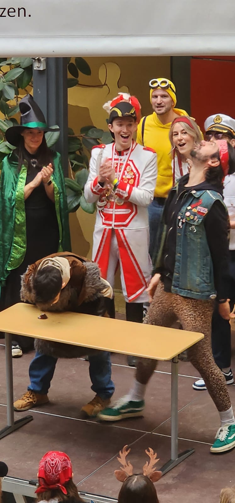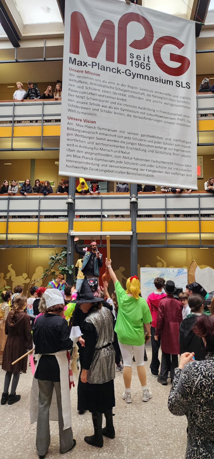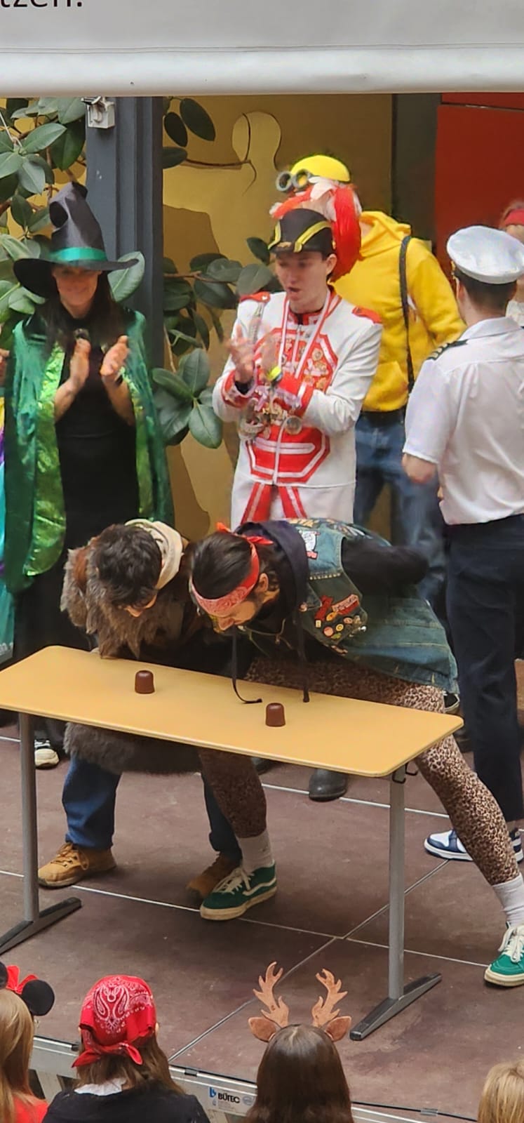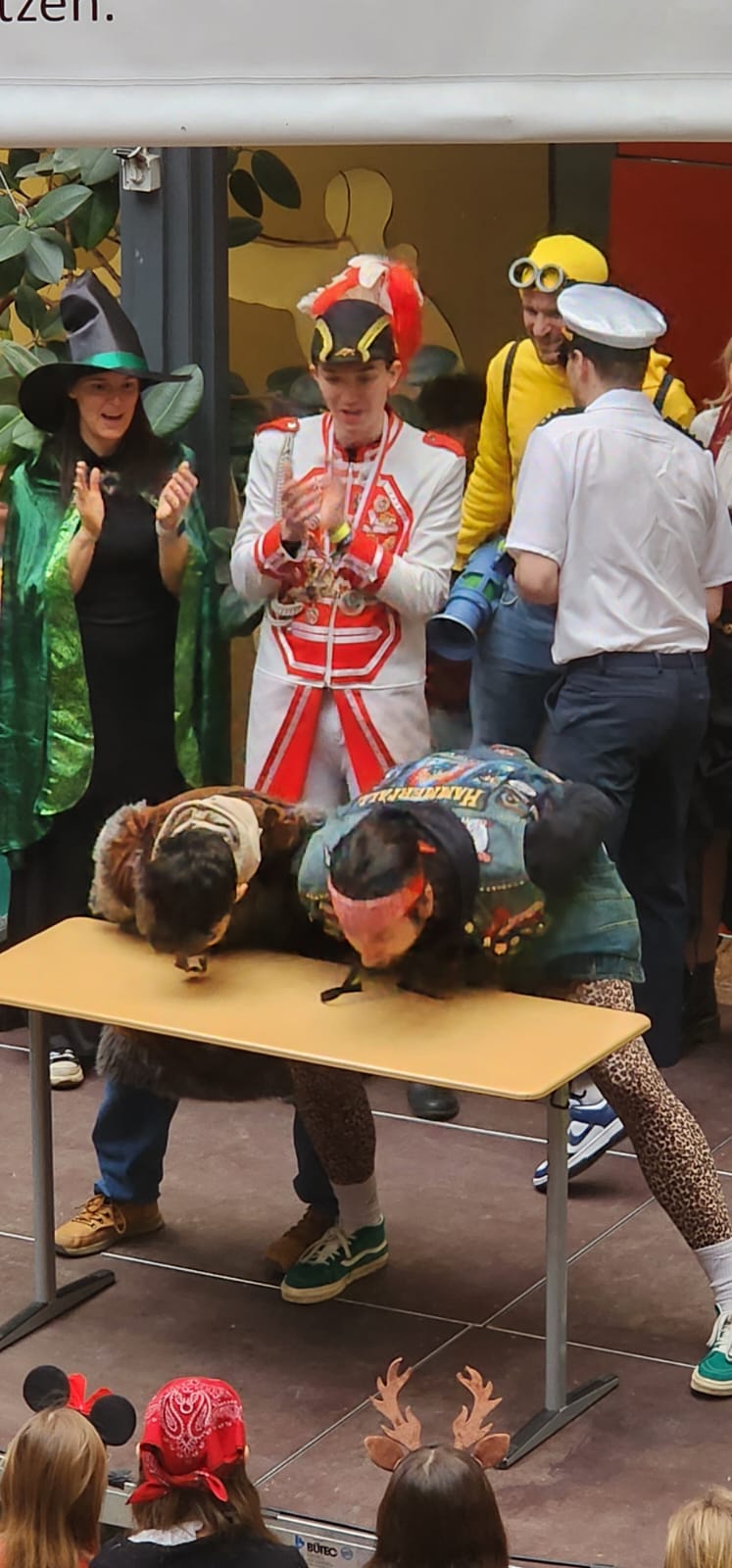 In einem engen Wettkampf konnten auch in diesem Jahr die Schülerinnen und Schüler das Faasend-Battle mit den Närrinen und Narren des MPG-Kollegiums knapp für sich entscheiden. In den fast 61 Jahren des Bestehens des MPG lässt der erste Sieg der Lehrerschaft nach wie vor auf sich warten.
