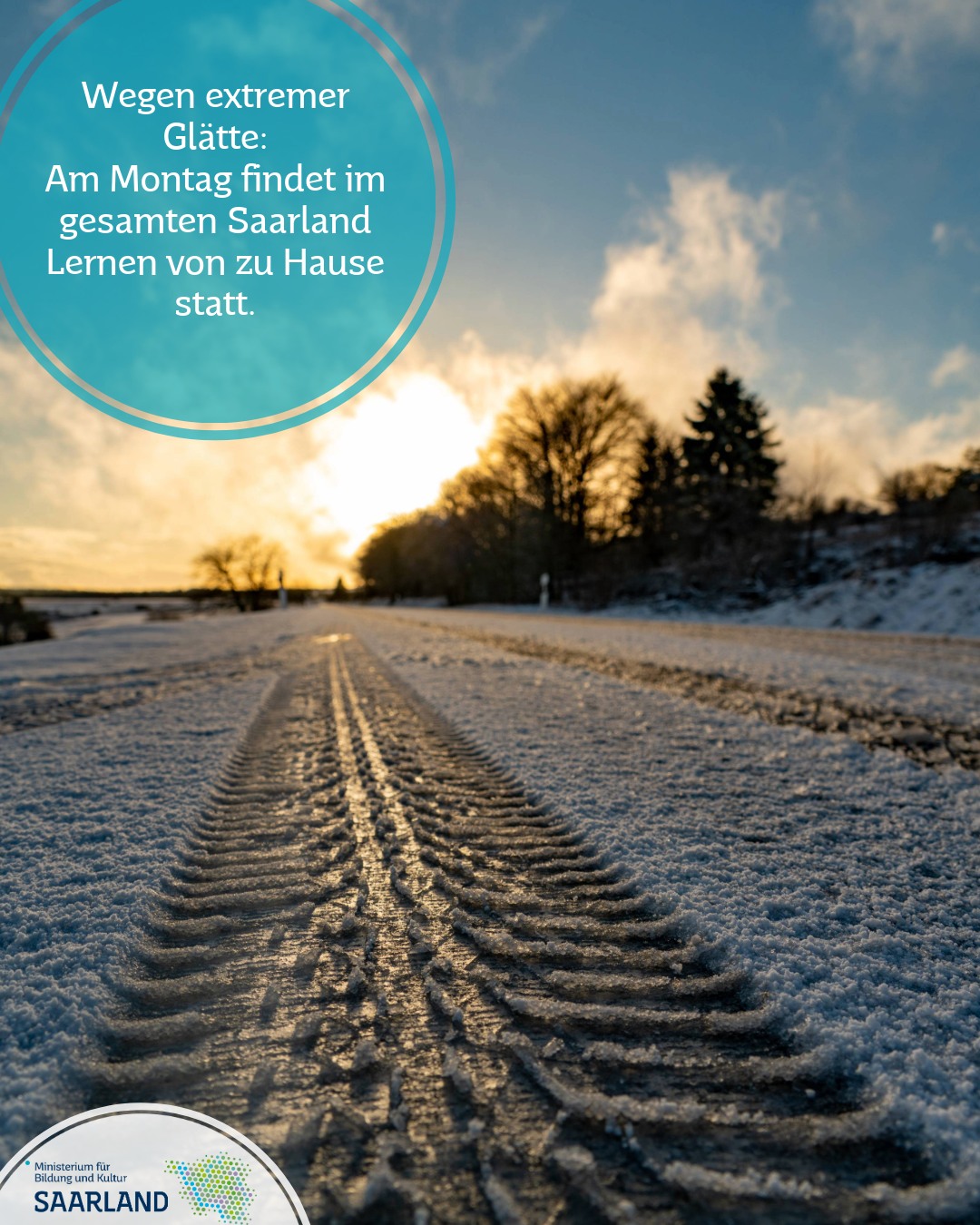 der Deutsche Wetterdienst warnt für die Nacht zum Montag und den Montagmorgen vor gefrierendem Regen, flächigem Glatteis und regional starkem Schneefall. Auf Grundlage der seit dem 01.08.2025 gültigen Regelungen des DiBiG setzt das Ministerium für Bildung und Kultur daher landesweit folgende Maßnahme um: