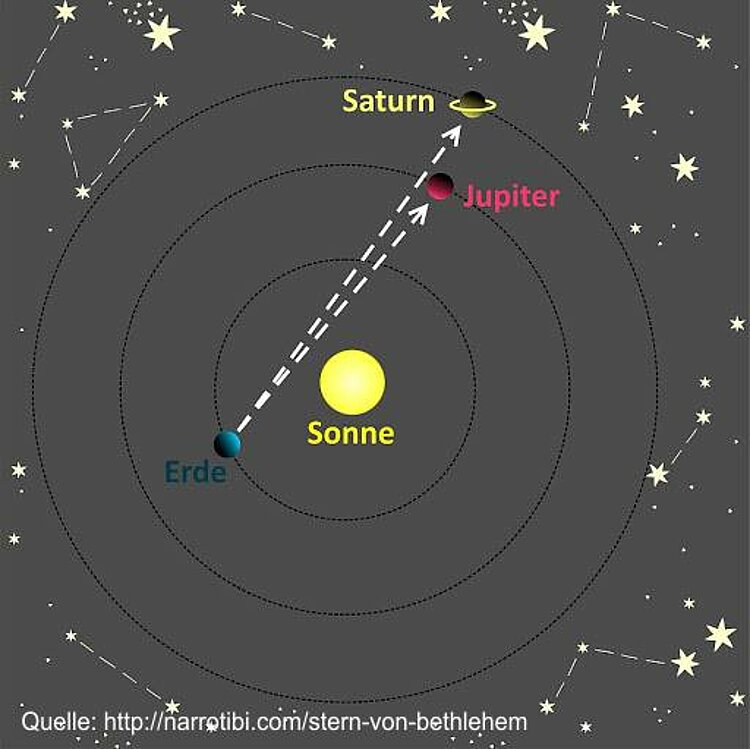 Aktuell gibt es ein seltenes Phänomen zu beobachten. Ein Planet überholt einen anderen: Jupiter wird von der Erde aus betrachtet Saturn überholen. Die beiden Planeten sind dabei übrigens immer noch etwa 730 Millionen Kilometer voneinander entfernt. Diese scheinbare Annäherung wird „Große Konjunktion“ genannt.